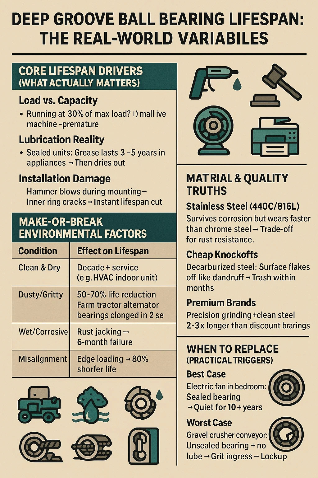 | Berdebu/Berpasir | Pengurangan hidup 50–70%. | Bantalan alternator traktor pertanian tersumbat dalam 2 musim |