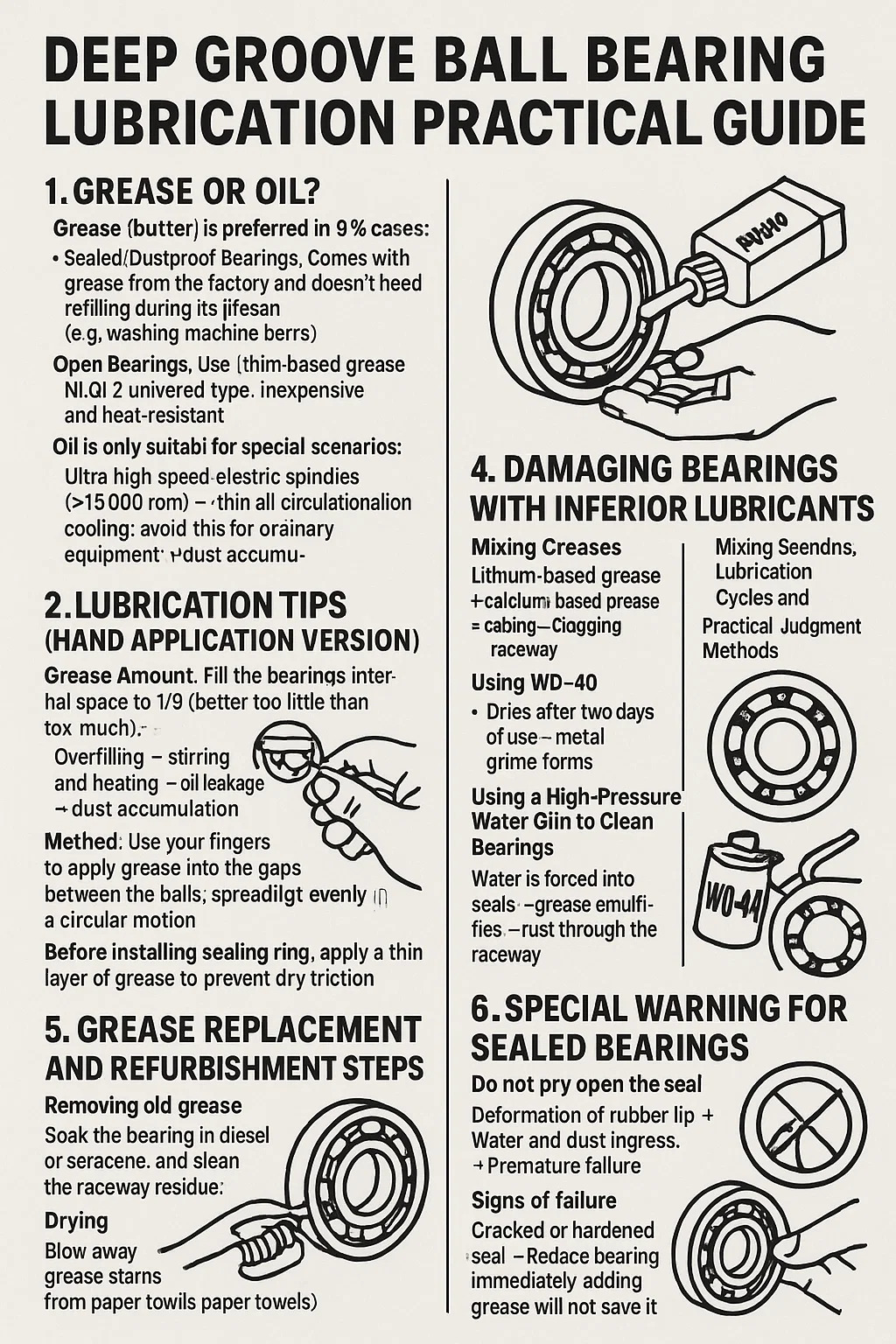 Open Bearing : Gunakan gemuk berbahan dasar litium NLGI 2 tipe universal, murah dan tahan panas.
